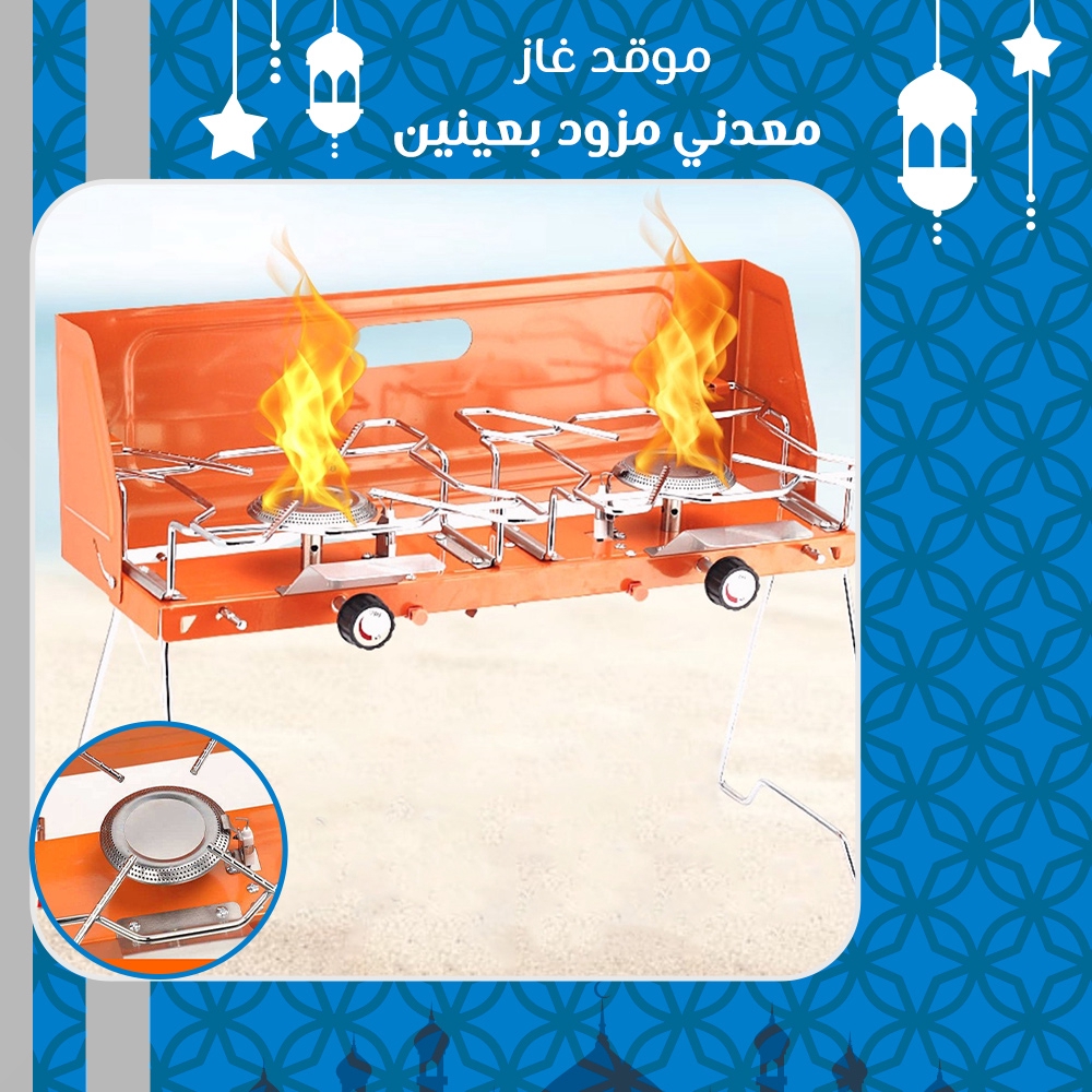 - موقد غاز معدني مزود بعينين قابل للطي سهل التنقل للرحلات و الاماكن الخارجية