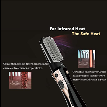 مصفف ومنعم الشعر بتصميم جميل تم تصميمه ليكون سهل الاستخدام وفائق القوة، ليقضي على اي صعوبة عند تسريح الشعر. مع 2 مرفقات يعمل كجهاز إستشوار يمكن استخدامه لمكواة للشعر او تمويجه