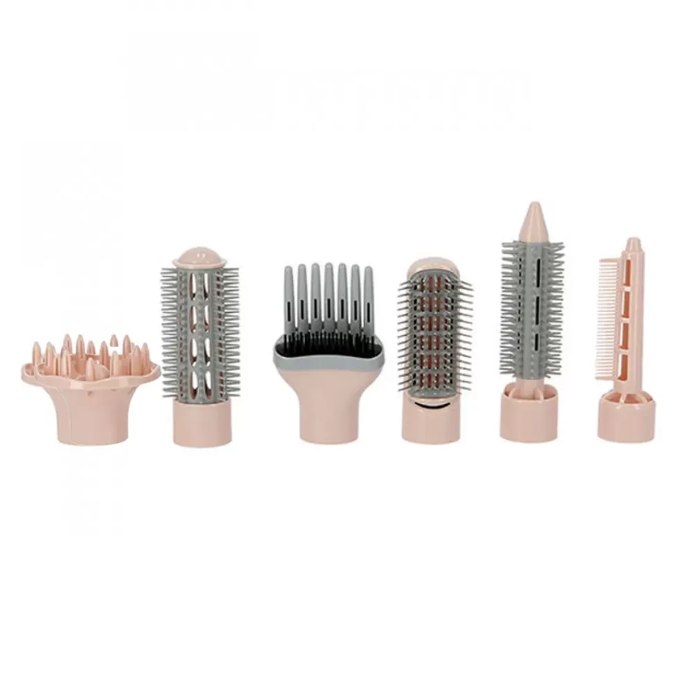 تحتوي على مجفف شعر، وفرشاة تمليس، وفرشاة شعر طويلة مجعدة، وفرشاة شعر قصيرة مجعدة، ومكثف للشعر.