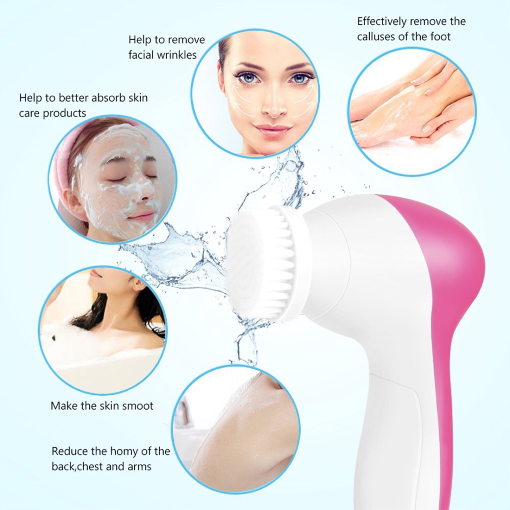 فرشاة كهربائية مضادة للماء متعددة الوظائف 5 في 1 للعناية ببشرة الوجه.
