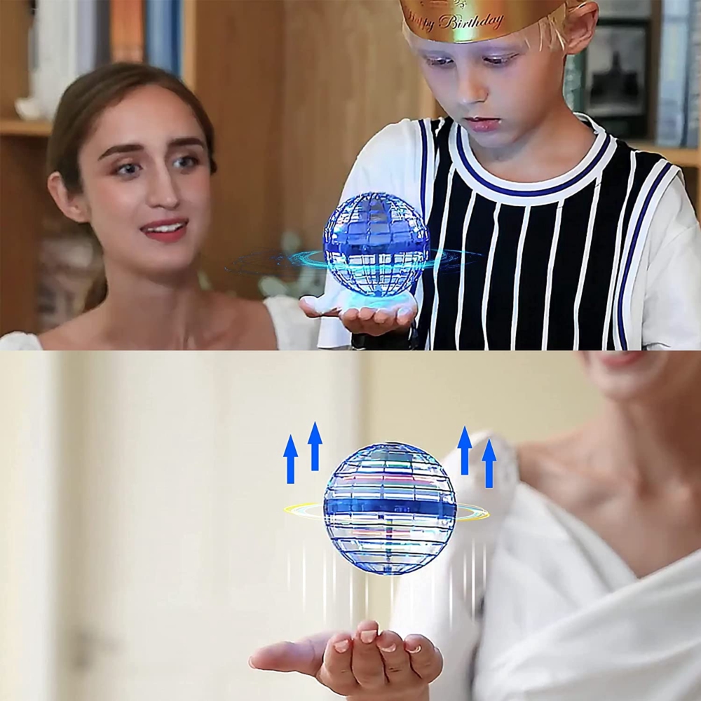 لعبة طائرة درون على شكل كرة مصنوعة من مادة بلاستيكية ناعمة وخفيفة الوزن ومرنة مما يجعلها مقاومة للصدمات , تم إخفاء المراوح بطريقة آمنة بداخل كرة الدرون الطائرة.