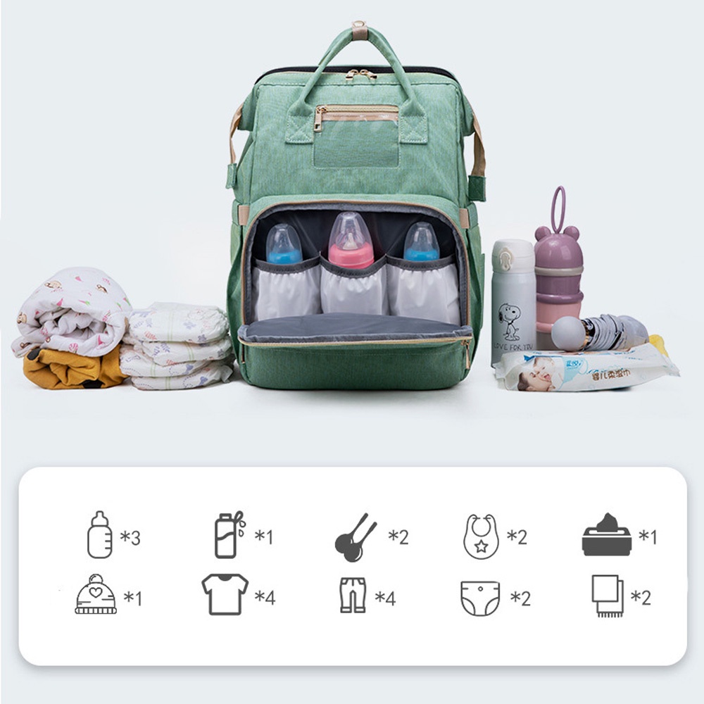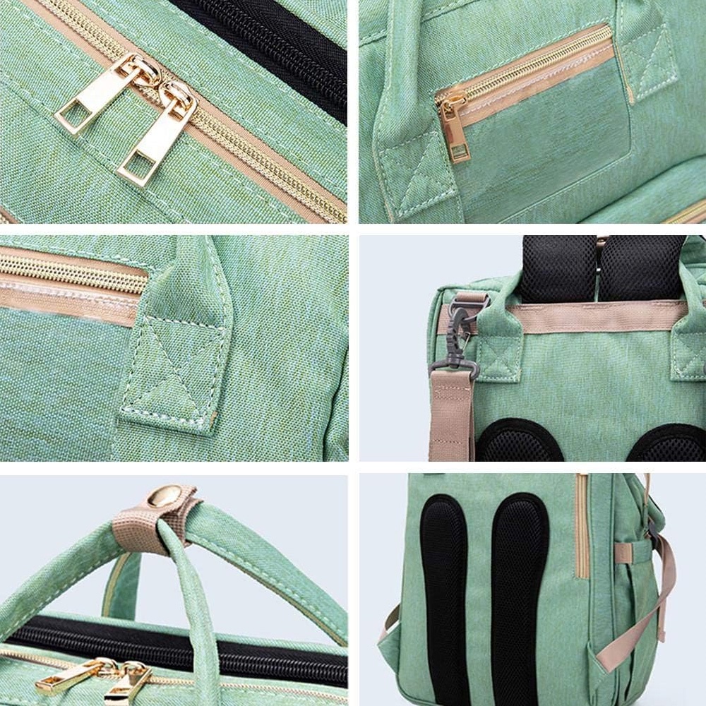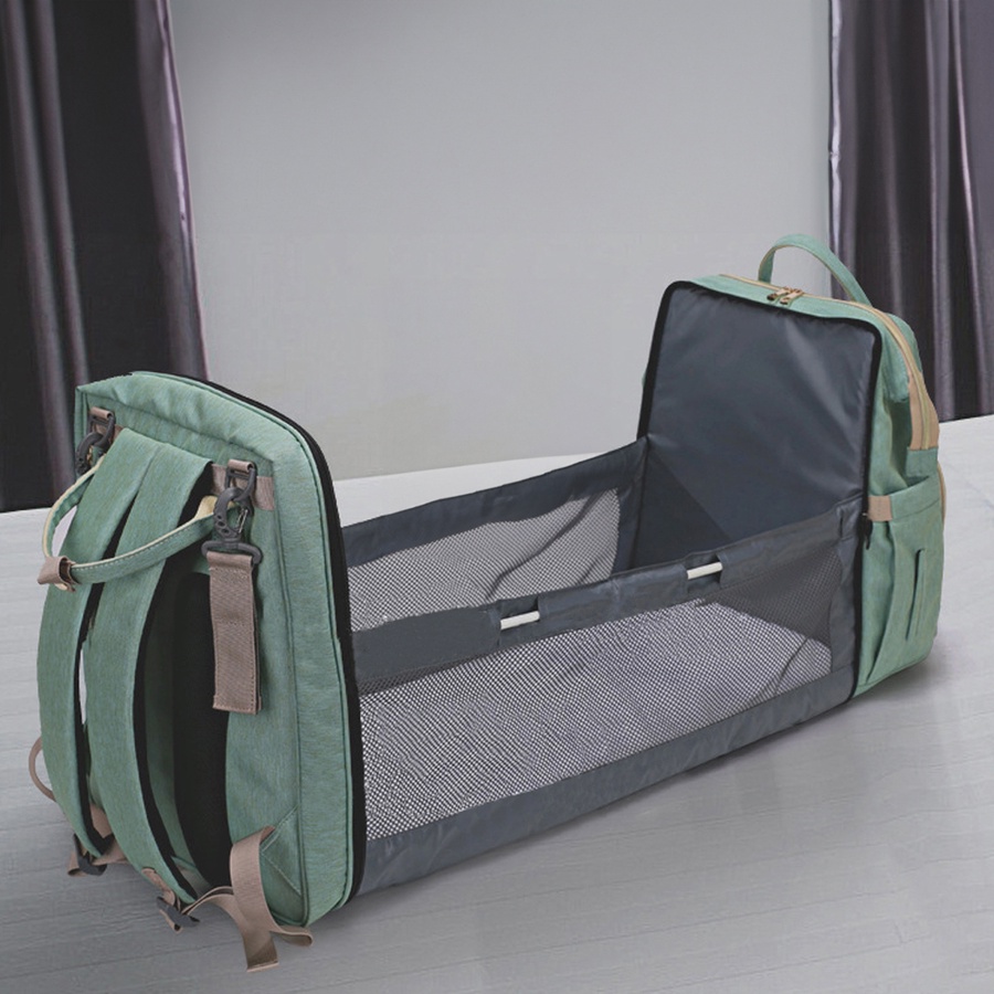 • تأتي حقيبة الحفاضات الأنيقة هذه مع سرير أطفال محمول قابل للفصل.