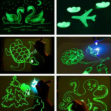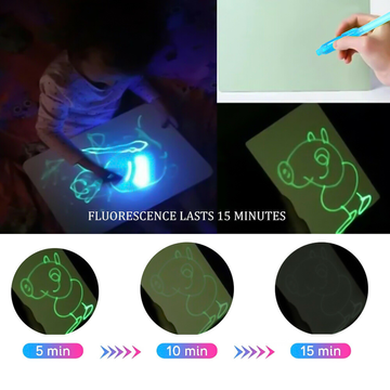 🎨 تجي السبورة بقلم يمكن الكتابه به بواسطة الضوء المدمج معه وتظهر الكتابة مضيئة في الظلام.