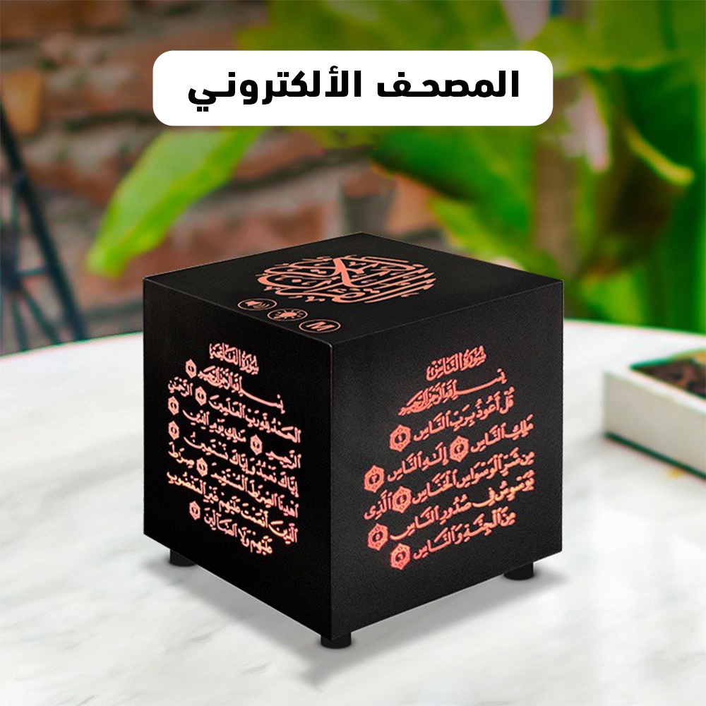 مكبر صوت لاسلكي مرتل للقرآن الكريم ، بتصميم مكعب مع مصباح يعمل باللمس .