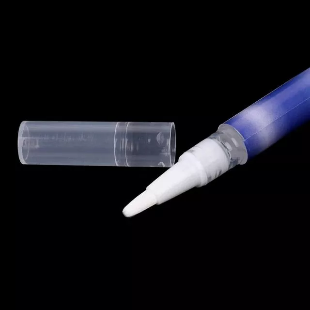٢- قلم تبيض الاسنان اله طرفين الطرف الاعلى عباره عن الفرشاه والطرف التاني عباره عن بكره بتلفيها عكس عقارب الساعه مع رج القلم لحتى يطلع الجل للفرشاة