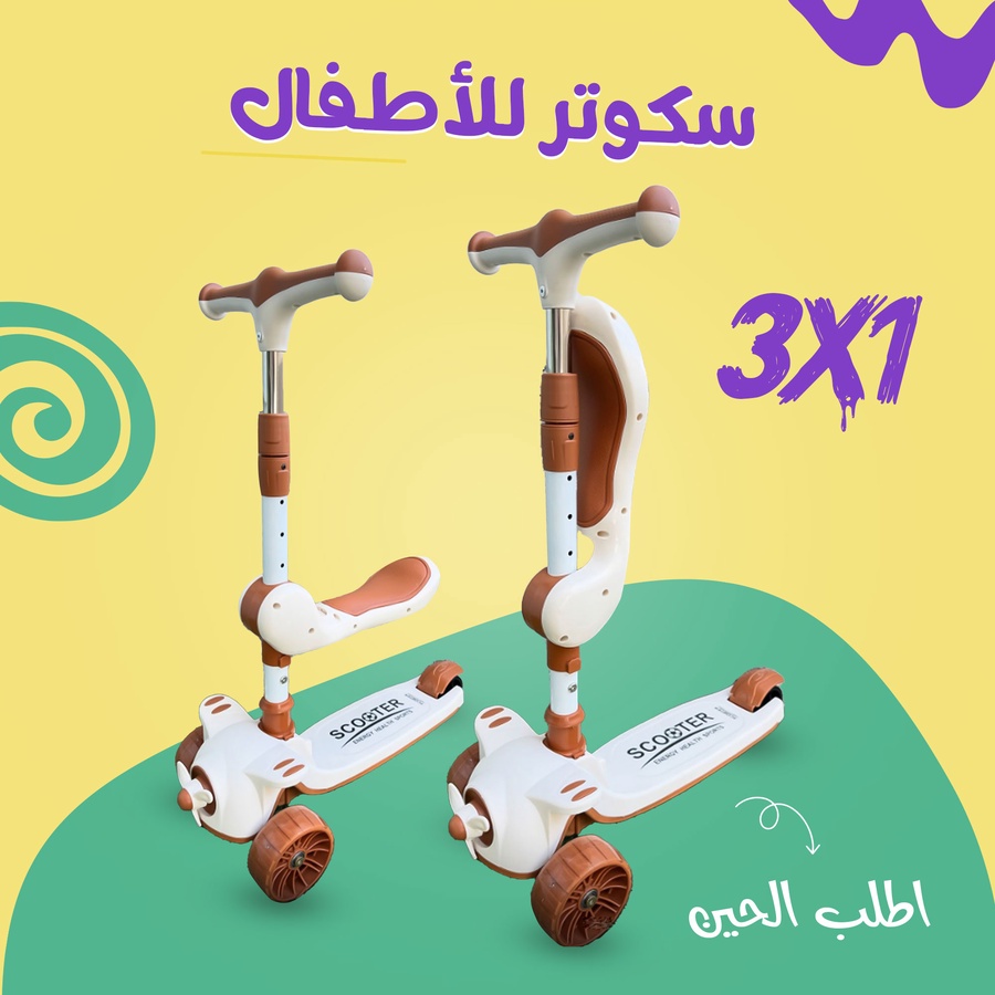 تصميم بثلاث عجلات يعطي ثبات وأمان أكثر للطفل.