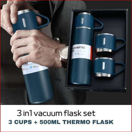 Atipriya أحدث ترمس صلب مع 3 أكواب فولاذية كومبو - 500 مل - هيرمرفيك - عديم الرائحة - يحافظ على السخونة / البرودة | هدية مثالية لفصل الشتاء والصيف - لون عشوائي