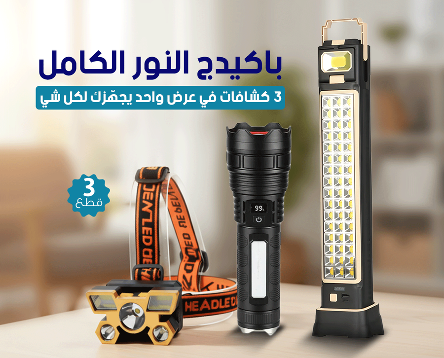 عرض 3 كشافات تخييم وطوارئ بإضاءة LED قوية وشحن شمسي وUSB. مثالي للبر، الرحلات، المخيمات، وانقطاع الكهرباء
