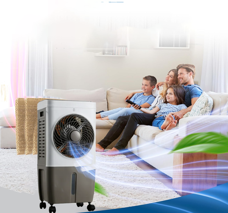 استمتع بالراحة والبرودة في كل زاوية من منزلك مع مروحة التبريد الكبيرة والمتنقلة. اجعل أي مكان في منزلك ملاذًا منعشًا في أيام الصيف الحارة.