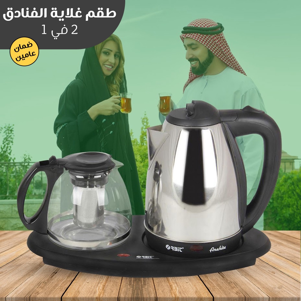 غلاية سعة 1.8 لتر مع إبريق شاي 1500 وات