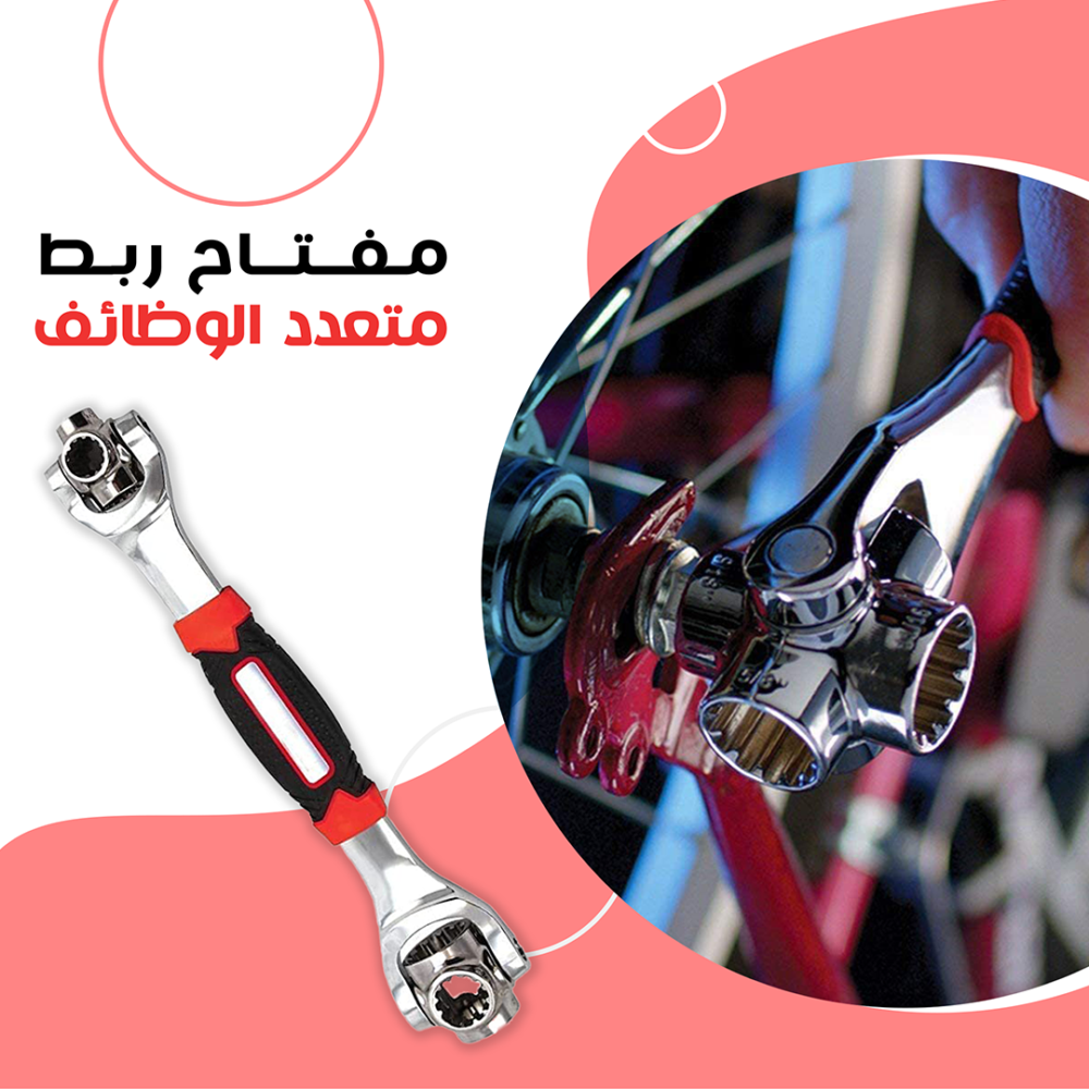 - مفتاح ربط بأحجام مختلفة مع رأس دوار 360 درجة