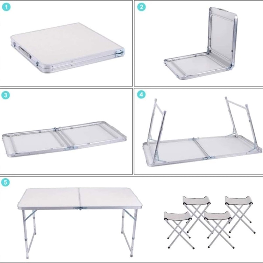 • 4 كراسي تنطوي وتخزن داخل الطاولة بسهولة.