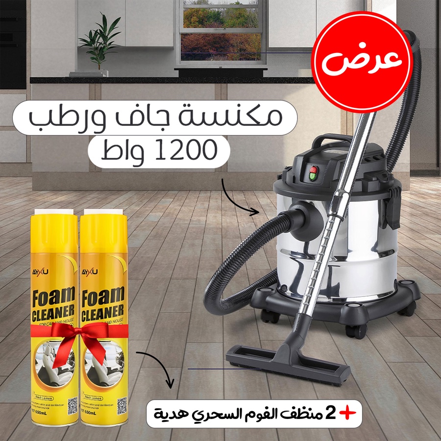 • 1 x مكنسة كهربائية رطب وجاف – 12 لتر