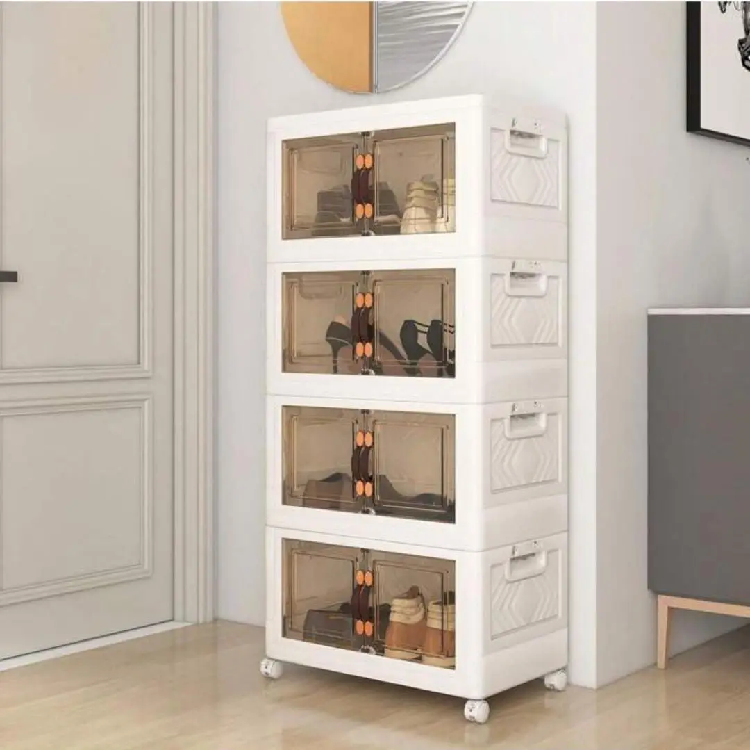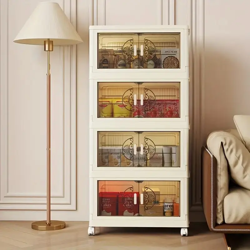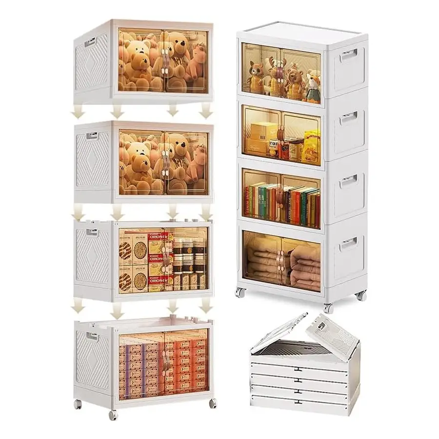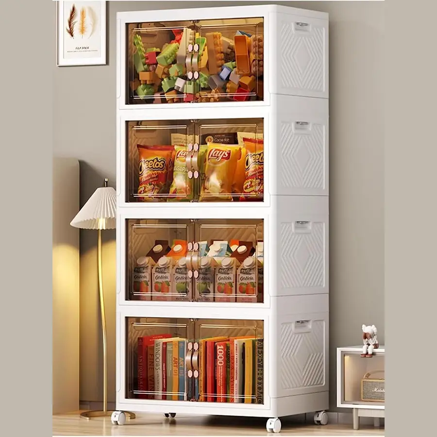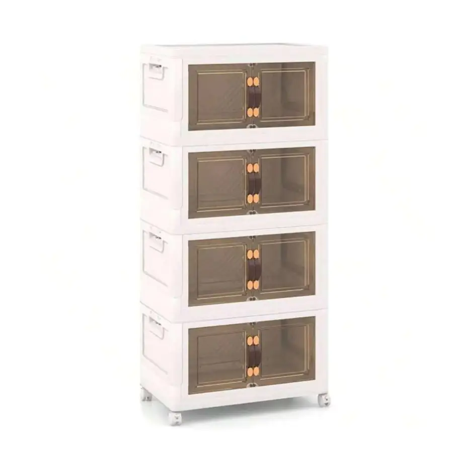صندوق تخزين عملي 4 طبقات مع عجلات وأبواب مغناطيسية، سهل التركيب بدون أدوات.