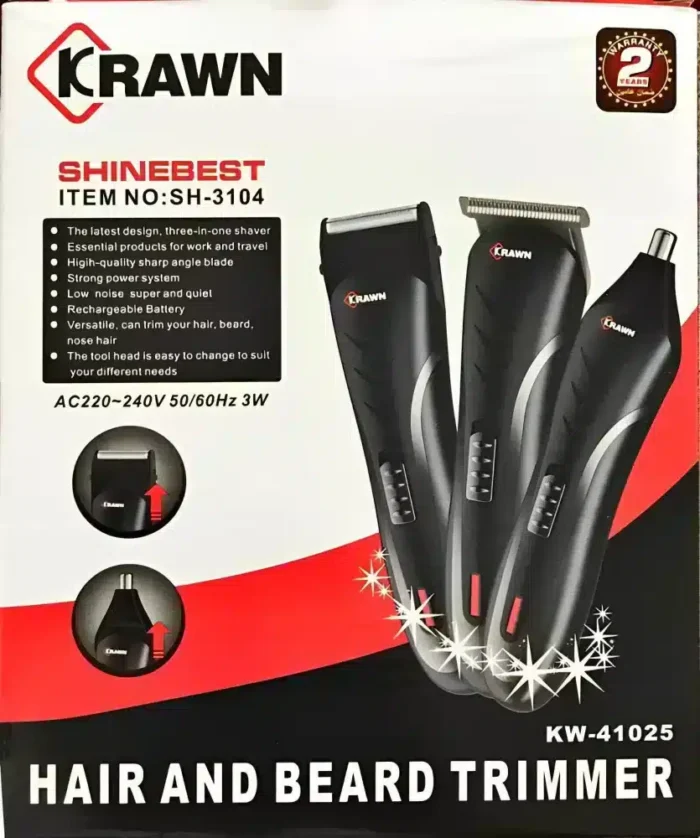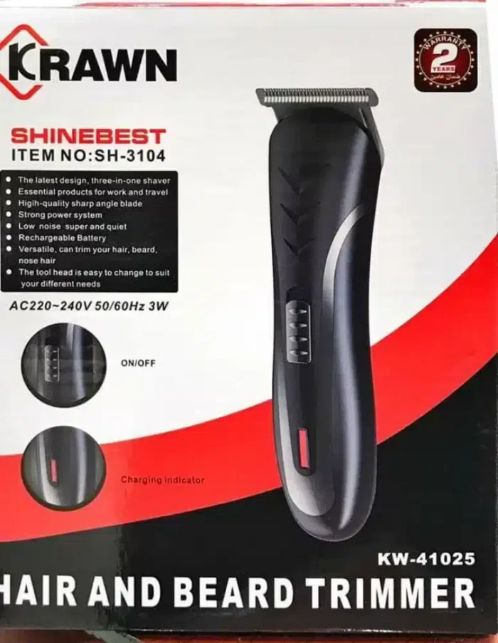تتميز ماكينة قص الشعر والذقن القابلة لإعادة الشحن من Krawn بشفرة حادة عالية الجودة وبطارية قابلة للشحن