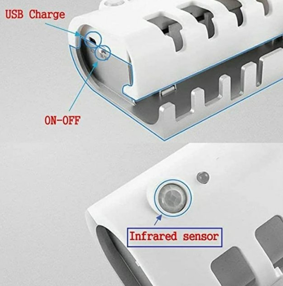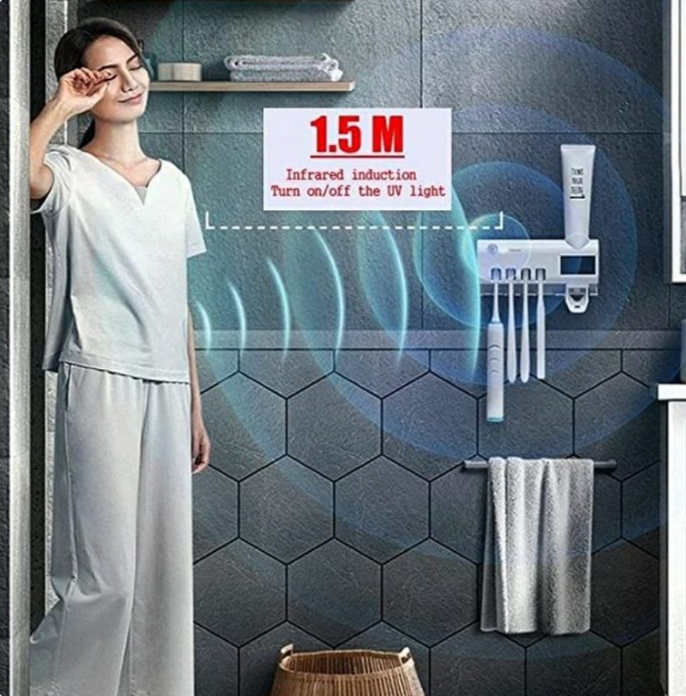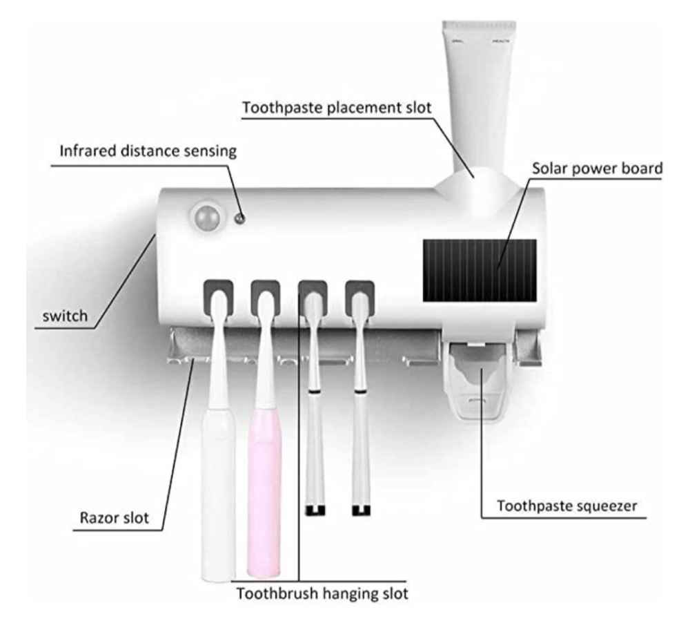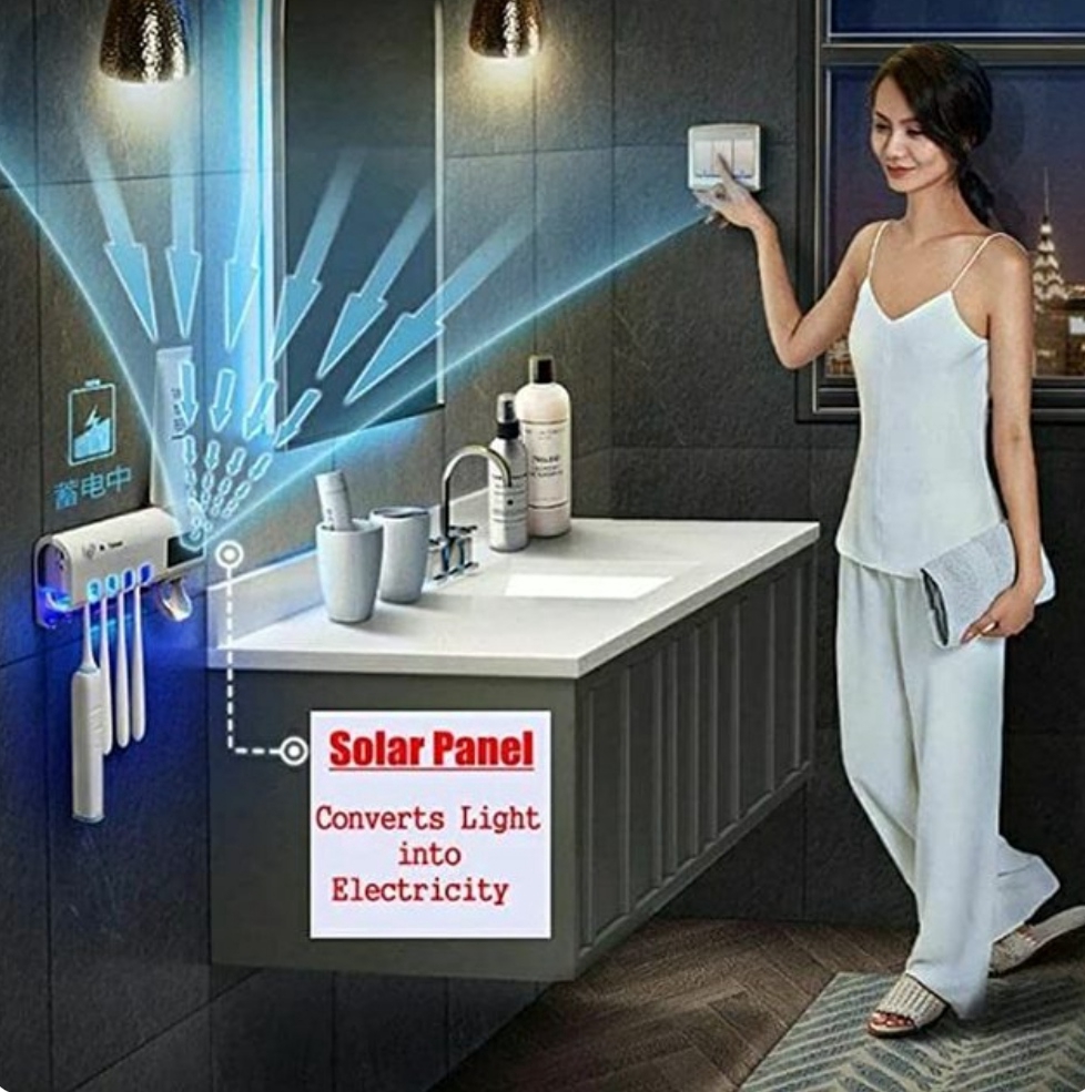 يقوم بتعقيم فرش الاسنان بالأشعة فوق البنفسجية التي تقتل البكتيريا والفيروسات والعفن الدقيقة والعفن والكائنات الحية الدقيقة الأخرى التي تنمو وتتكاثر في شعيرات فرشاة الأسنان.