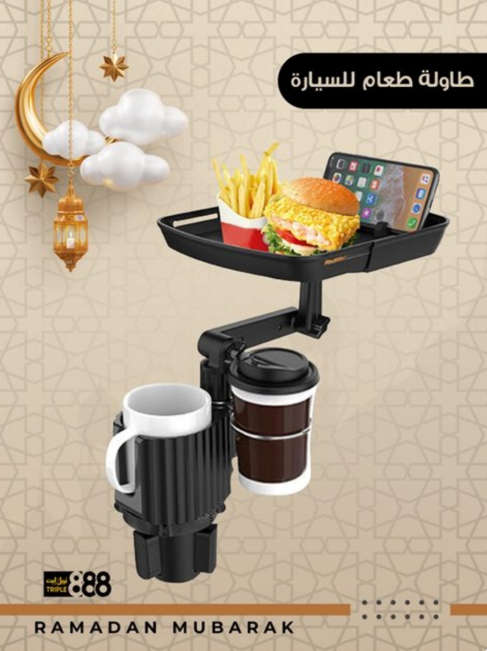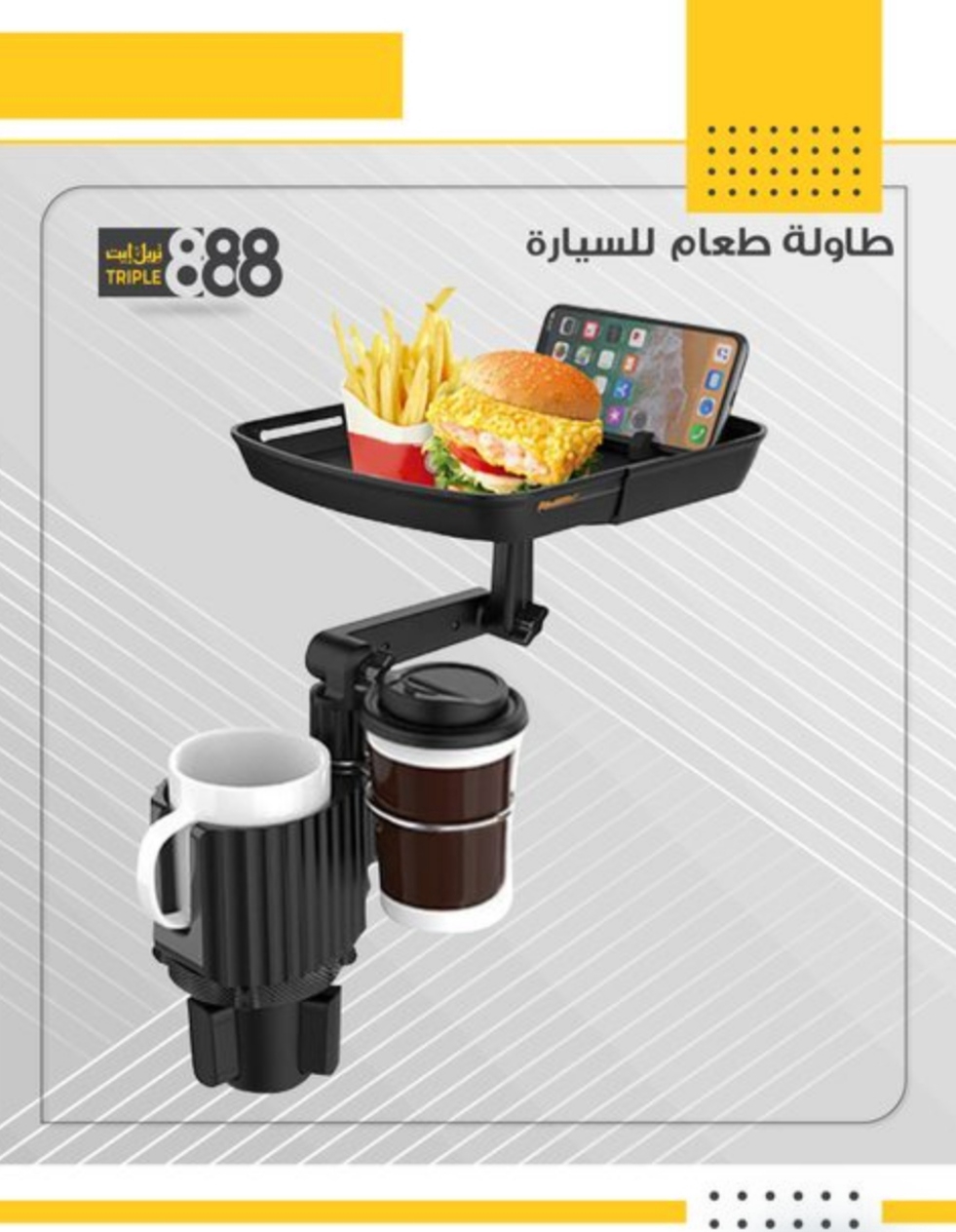 * مناسبة جداً للاكل في السيارة وايضاً مناسبة للاطفال بالخلف .. يمكنك تثبيتها بقاعدة الاكواب
